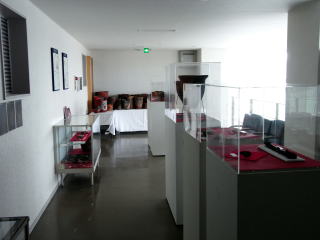 1階には、明治期からの日常生活用具などを納めた収蔵庫があり、収蔵と展示を一体化した陳列方法をとっています。約8,000点があるそうですが、今回の目的はここではありません。