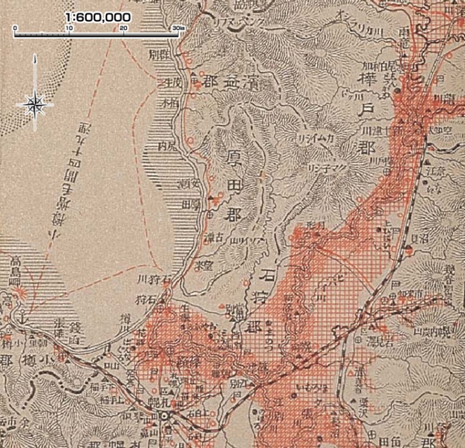 明治31年 石狩川中下流域洪水氾濫区域(北海道洪水概況・附図面・北海道立図書館蔵)