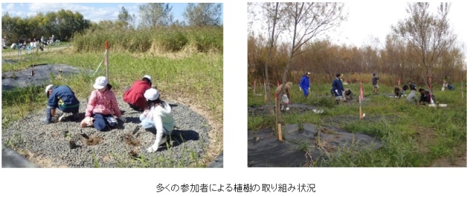当別地区では、河岸の整備、植樹の推進、湿地や水面の復元を通じて、かつてあった多様な環境を取り戻し、様々な動植物が生育する「水と生きものの郷」を再生することを目指しています。